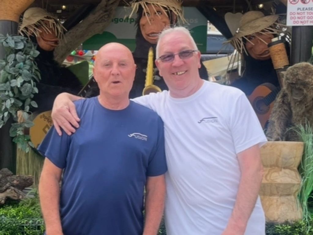 Les & Jimmy in Spain sporting the Blue and White Fusion TShirts - looking good fellas!